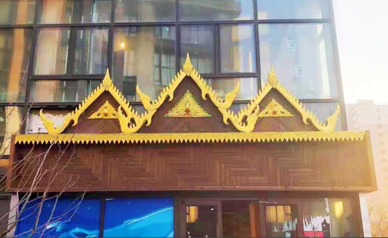 西双版纳餐厅装饰金孔雀屋顶泰式门头房檐傣族瓦金色花边水泥彩绘热门设计联盟服务商